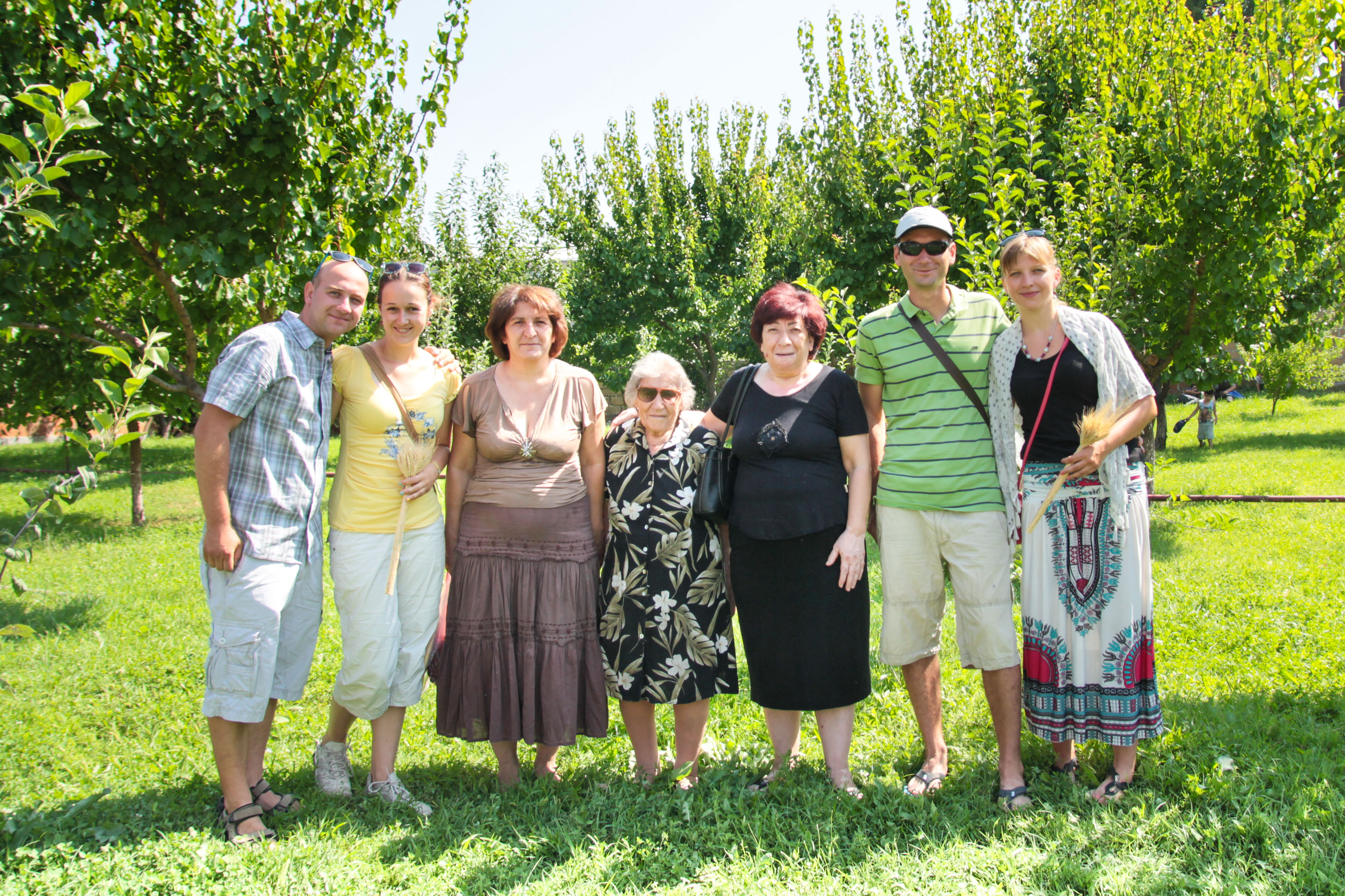 Ráno nás zo stanu vyháňa neznesiteľné teplo. Dnes sme vychytali sviatok sv. Panny Márie, takže nás tetušky zbalili so sebou do taxíka, nech zažijeme na vlastnej koži, čo tento sviatok pre Arménov znamená. Vyvezieme sa ku kostolu nad mestom. Ulice sú lemované stánkami, ale nečakajte klasický sortiment zložený zo suvenírov a gýčov…nie…tu sa predávajú sliepky, ovce, holubice, malé kuriatka, žlté húsatká, hrozno aj obilie vo zväzkoch… Každý návštevník si kúpi to, čo doma pestuje alebo chová a pred kostolom si takto nechá kňazom požehnať svoju úrodu. Aj tetušky kupujú strapec hrozna a ich vnuk Hrant sa pretláča davom ku spotenému, evidentne vyčerpanému, ale stále poctivo žehnajúcemu kňazovi. Všetko to má zabezpečiť dobrú úrodu a skôr žatva nikde nezačína. Ani naše tety pred týmto sviatkom neodtrhnú z vinice ani jeden strapec. Vedľa kostolíka následne zapálime sviečky, každý na to má svoj dôvod, niekto myslí na úrodu, niekto na deti, iný na svojich zosnulých. Zaujímavosťou je, že sviečky sa tu hádžu do ohňa celé. Ale bude to asi čisto z praktického hľadiska…príliš málo svietnikov na príliš veľa veriacich.